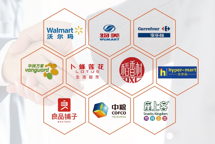 依托优质的产品与专业的服务,与华润万家、沃尔玛、家乐福、物美、卜蜂莲花等大型连锁超市建立并保持长期的良好合作;